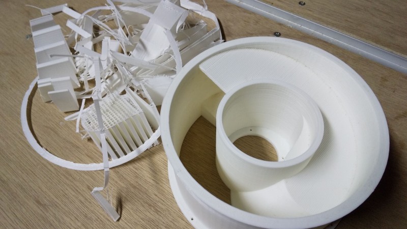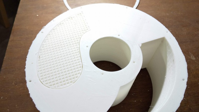 無事完走。 3Dプリンター 2020-05-16 肌は汚いけど上出来です。^^反り、積層割れ無く理想通り。infill は 20% にしたけど強度も十分でした。 サポートがびっしり。中にもしっかり詰まってます。 苦戦しながらも壊すことなく除去できました。 無難にPLAフィラメントを買おうかなぁ…なんて考えたりしたけど、強度や接着性を考えるとやっぱりABSがいい。これさえプリントできれば後はそれほど問題にはならないでしょう。 ただいま7時間ものをプリント中… 投稿
