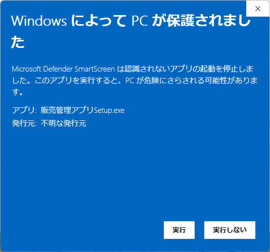 - 対象ファイル: 販売管理アプリSetup.exe