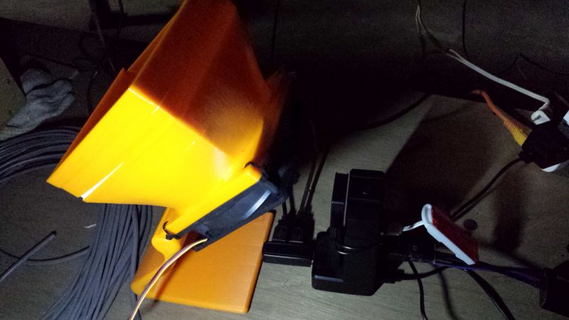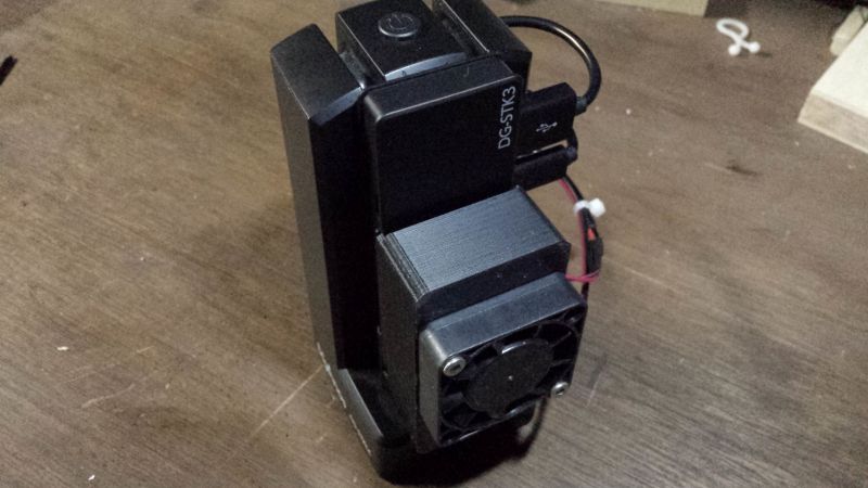 今は二代目。しばらく半田付け用に使ってる排煙ファンを当ててましたが電源が別に必要だし、でかくて邪魔でした。