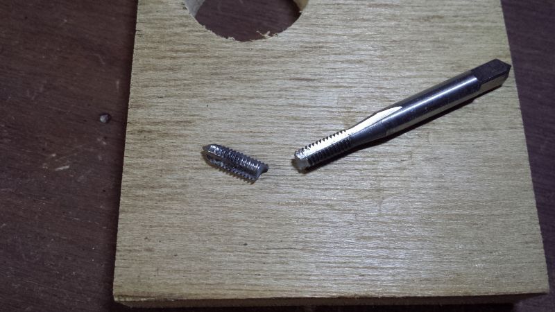 これにM8ボルトとM4タップを突き刺しタップ側をクルクル回していくのですけど、無理な力が加わると…