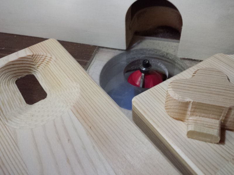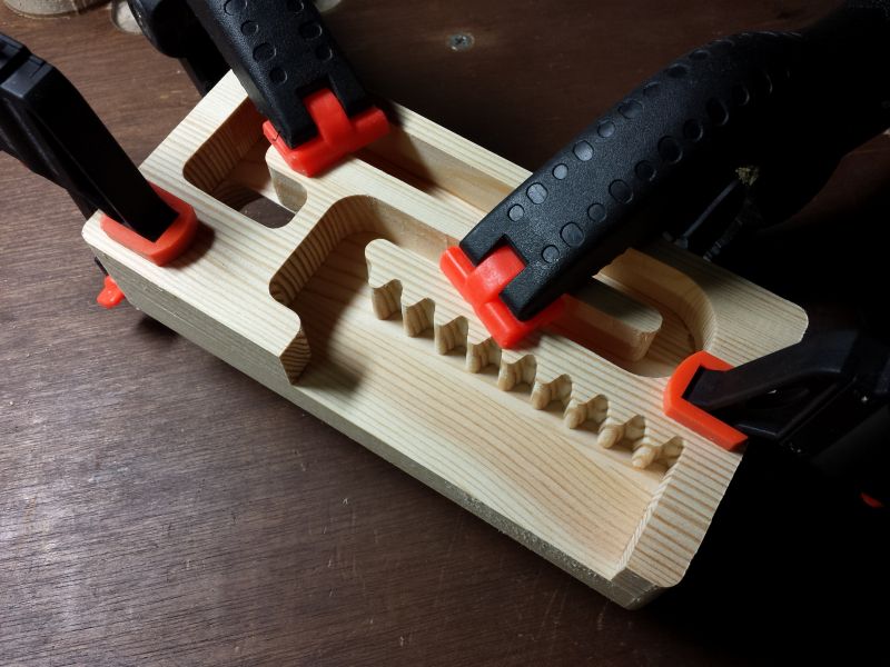 製作の続き 日曜大工 2018-07-14 トリマーテーブル使って面取り。 目視でビットの出具合を確認してたのをハイトゲージで調整。 これなら簡単に同じだけの面取りができます。買って良かった^^ (備忘録11.5mm) 一通り面取り。 そして張り合わせ。 気温が高すぎてボンドの渇きが早すぎ。 塗布してるうちに固まり始めてやりにくい… 今の時期だけボンド変えた方がいいかな。 投稿