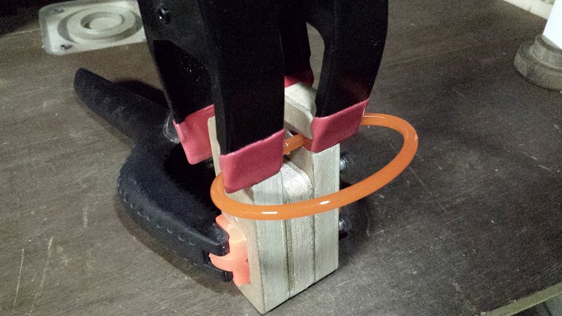 溝に丸ベルトを挟み込んでって考えてましたが保持力が弱くクランプを使いました。