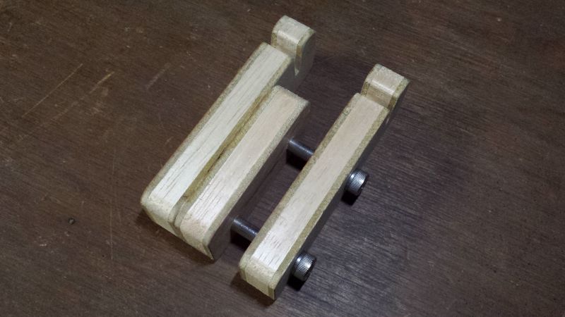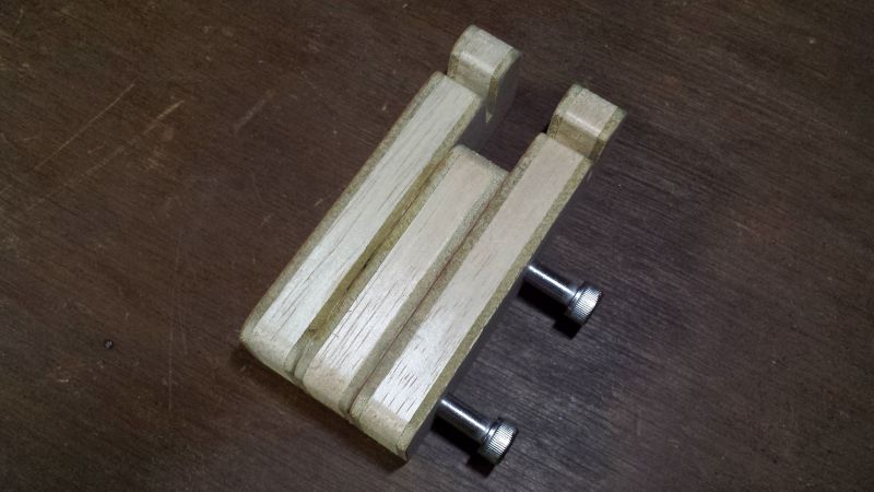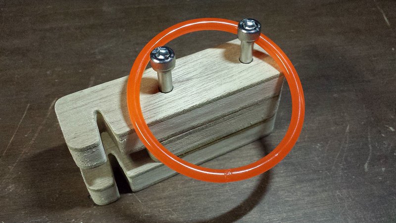 2枚をボンドで張り合わせ、6.4mmの穴が開いている板をフリーにしてボルトをねじ込みます。