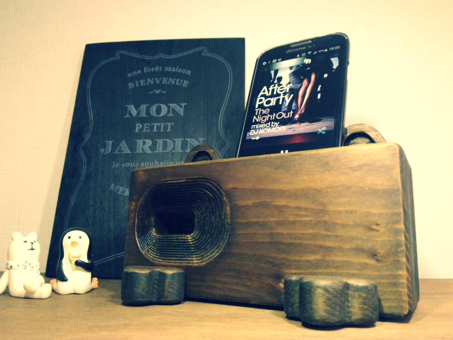 - 角度調整ができる木製スマホスタンド(ダークウォルナット色)