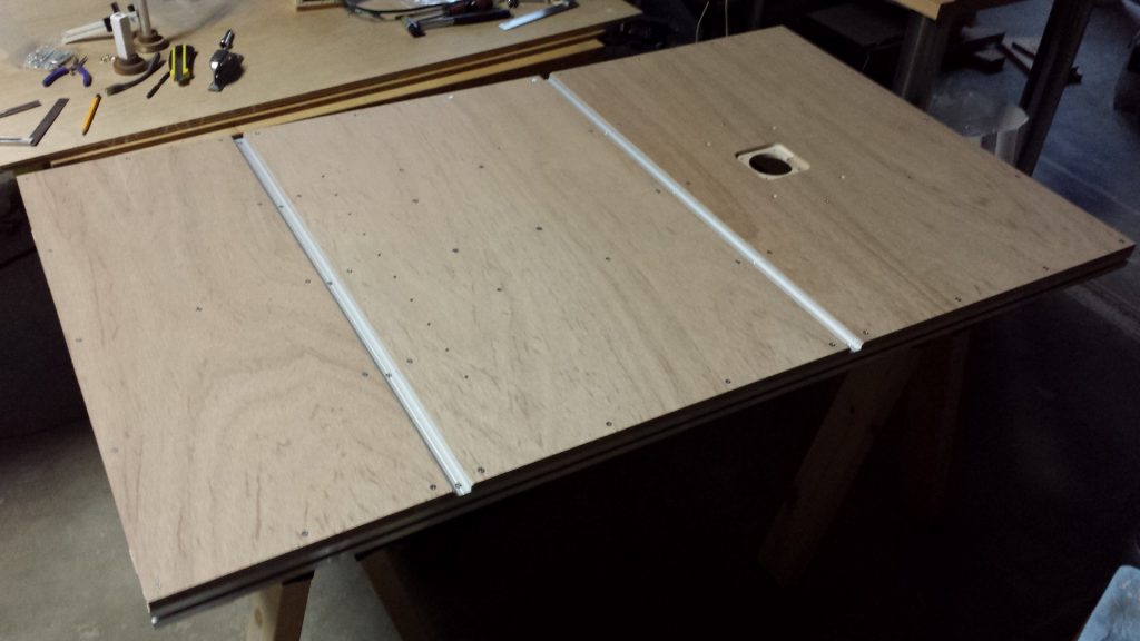 進み具合… 日曜大工 2019-04-18 フレームは木工らしくないアルミ押し出し材です。精度安定性を重視しました。それと天板に不具合や仕様変更が生じたときに容易に交換できるのもいいんじゃないかと。 土台は手抜き。 天板とマイタースロットバーを取り付け。丸のこは裏に隠れております。あっちの穴はテーブルソーとのセットでよく見かけるやつです。^^ ネオジム埋め込みました。今って2液のエポキシが100円で買えるんですね。。 投稿