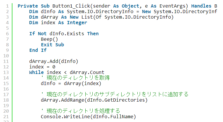 Dim dInfo As System.IO.DirectoryInfo = New System.IO.DirectoryInfo("ターゲットディレクトリ")